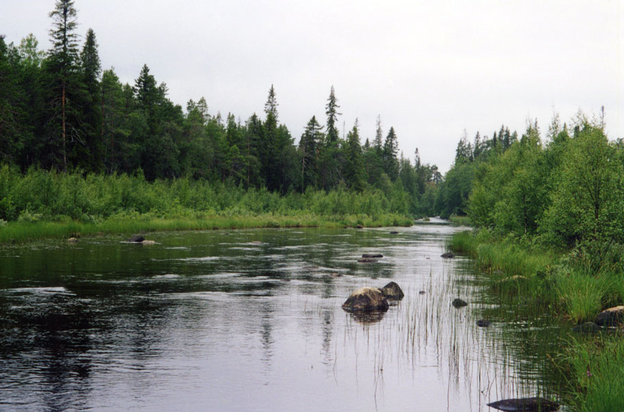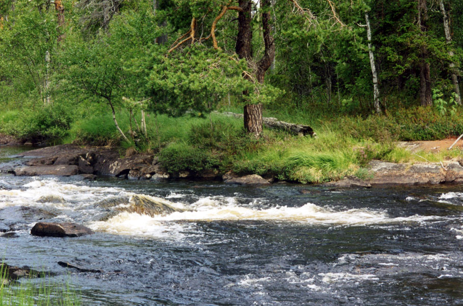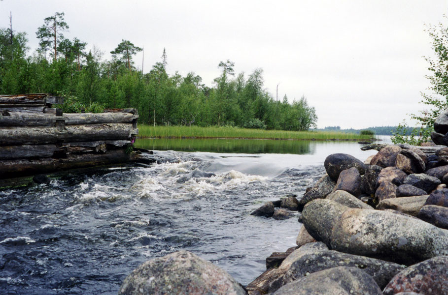 | Разрушенная плотина. Слабый перекат П1. Оз. Пайозеро.