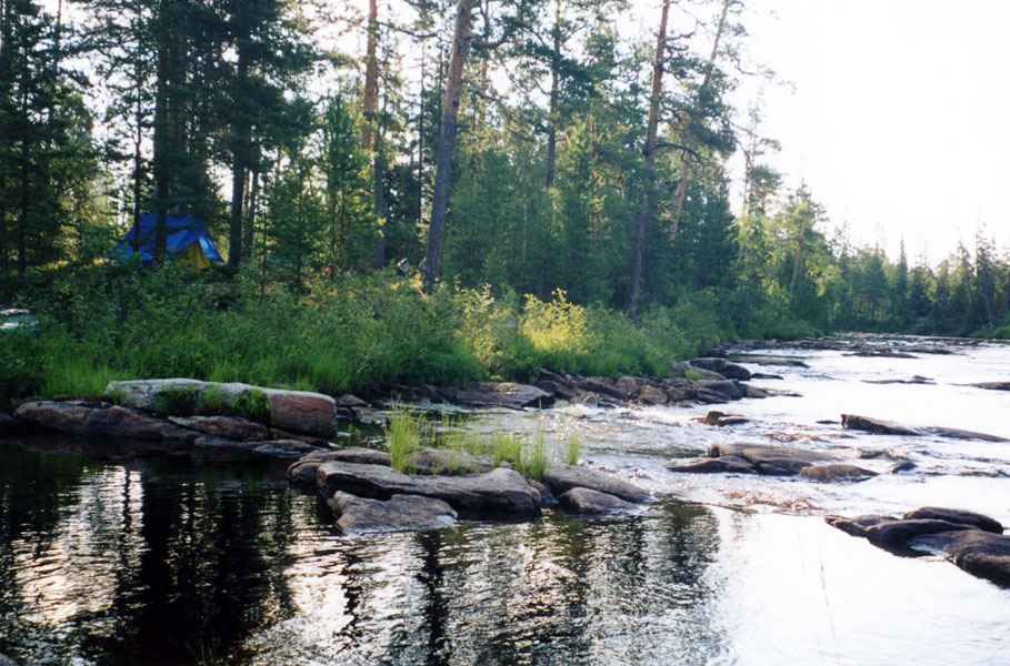 | Стоянка на правом берегу рядом с каменной плотиной. Дневка.